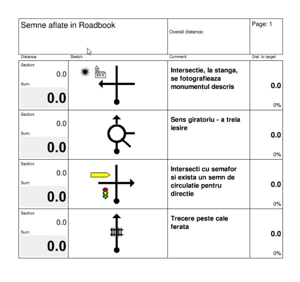 In Roadbook este descris traseul ce trebuie parcurs de catre concurenti, printr-o insiruire logica de semne conventionale insotite de distante partiale,